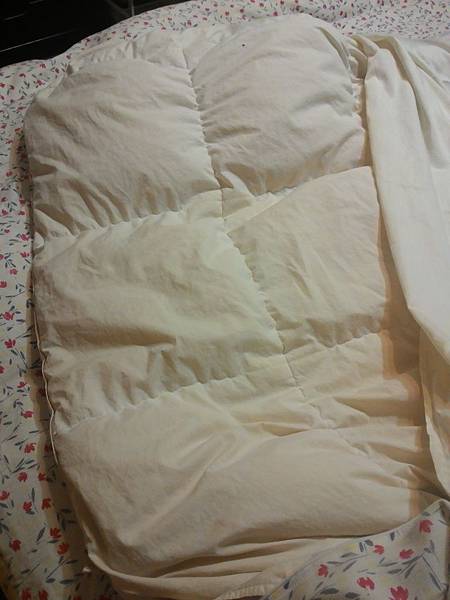 我那床昂貴羽絨被的蠶絲被套也有點破損了, 因羽絨被的蓬鬆彈性佳,