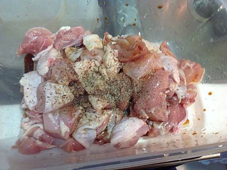去骨雞腿肉在好市多買的,6小袋400多元, 我拿其中一袋切小丁, 用2小匙的醬油和
