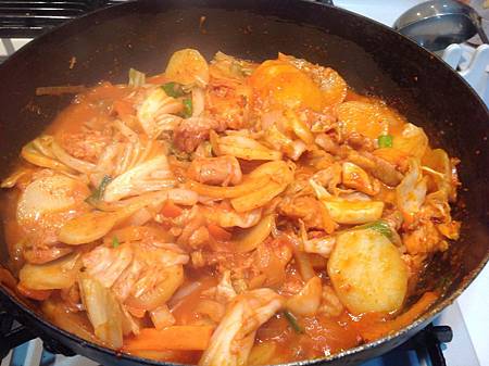 把所材料放進去拌炒, 有點像煮咖哩的樣子.