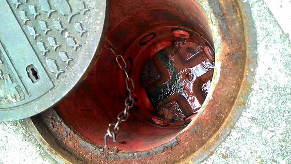 再進到大圓鐵人孔蓋的衛生下水道,然後再到